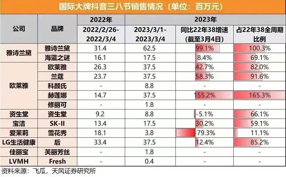 而在抖音平臺(tái)中,今年38大促的銷(xiāo)售額,大部分國(guó)貨的成績(jī)似乎也不如人意。