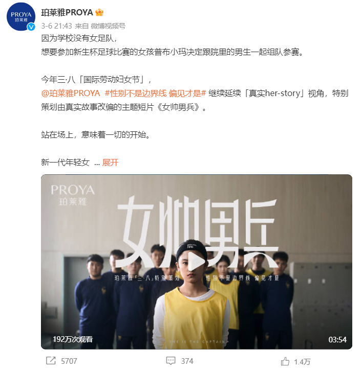 如珀萊雅一直在呼吁“消除性別偏見(jiàn)”,并連續(xù)推出多個(gè)致敬“她力量”的營(yíng)銷(xiāo)事件。今年,珀萊雅繼續(xù)在“性別不是邊界線 偏見(jiàn)才是”的主題下,特別策劃《女帥男兵》故事短片,并將紅寶石精華、紅寶石面霜、雙抗精華等經(jīng)典大單品進(jìn)行多種組合銷(xiāo)售,刺激消費(fèi)。