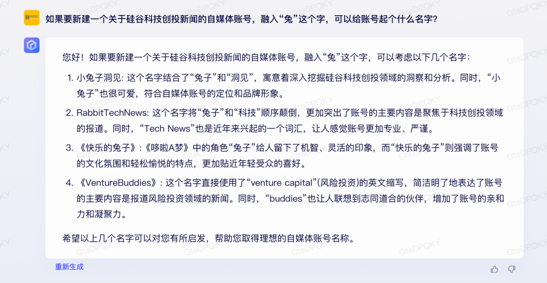 文心一言給出的答案其實(shí)挺贊,考慮到硅谷的屬性,甚至也有英文的名字。