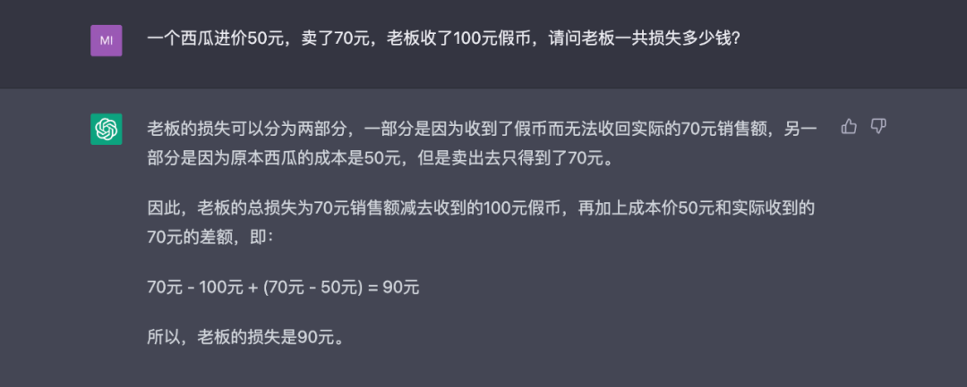 這個(gè)問(wèn)題同樣問(wèn)了ChatGPT,它一頓邏輯推理瘋狂輸出之后,給出了一個(gè)不同答案。