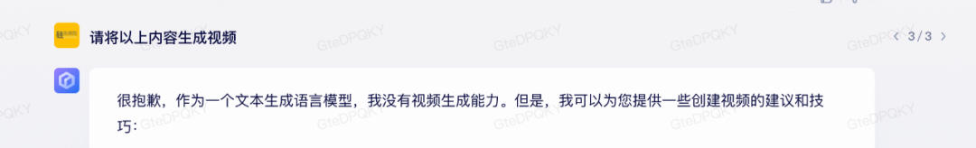 生成視頻方面也沒(méi)有實(shí)現(xiàn),并且給出了“無(wú)法生成視頻”的回復(fù)(難怪發(fā)布會(huì)上用的錄像,不然大型翻車(chē)現(xiàn)場(chǎng))。