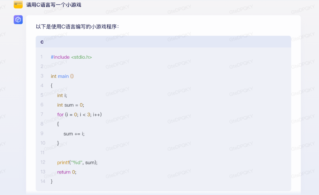 還有一個(gè)被忽略的點(diǎn)就是編程能力,在發(fā)布會(huì)上并沒(méi)有展現(xiàn),也是ChatGPT的優(yōu)勢(shì)之一。硅兔君讓文心一言用C語(yǔ)言編一個(gè)小游戲,這是它給出的回答: