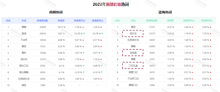 從消費(fèi)者端來看,消費(fèi)者對(duì)臉部彩妝的分膚意識(shí)逐漸增強(qiáng)?!罢阼Α⒖赜?、提亮仍為主要需求,但針對(duì)油皮、干皮、淚溝等部位的處理也逐漸受到消費(fèi)者關(guān)注?!绷_興分析道。除此之外,唇部彩妝存在非常高的“送禮”特性。“2022年,很可能是依靠‘送女友’、‘送老婆’帶動(dòng)了整體增長(zhǎng)?!?/p>