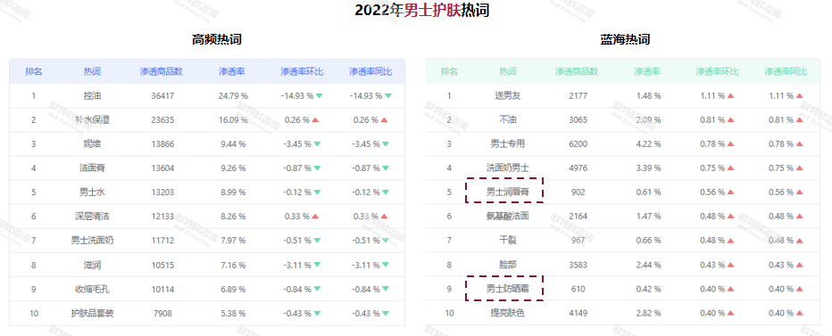 與彩妝類目相似,男士護(hù)膚及彩妝品類2022年單月也普遍呈現(xiàn)下滑趨勢(shì)?!澳惺款惸壳安⑽葱纬梢?guī)模,并且品牌集中度較高?!卑灼@示,男士護(hù)膚品類中,歐萊雅單個(gè)品牌占比便達(dá)22.1%。此外,仁和、科顏氏的銷售增速較快,前者暢銷單品為主打除螨的洗面奶,后者則為水乳套裝?!翱赜?、補(bǔ)水保濕為男士護(hù)膚的主要需求。但目前此品類也在向多類目發(fā)展,比如男士專用潤(rùn)唇膏、防曬霜等產(chǎn)品,都呈現(xiàn)上升趨勢(shì)?!?/p>