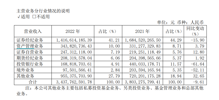 其他業(yè)務(主要包括私募投資、另類投資、基金管理等)實現(xiàn)營收9.55億元,占比27.79%,在主營業(yè)務中位列第二。該項業(yè)務同比增長32.65%,是信達證券主營業(yè)務中增幅最大的一項。