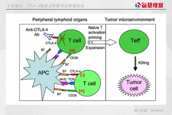 目前,針對(duì)CTLA-4抑制劑機(jī)制主要有兩種不同的學(xué)說(shuō)。