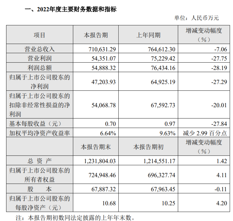 3月14日晚間,上海家化發(fā)布了2022年度業(yè)績快報:報告期內(nèi),公司實現(xiàn)營業(yè)收入71.06億元,同比減少7.06%;實現(xiàn)歸屬于上市公司股東凈利潤4.72億元,同比減少27.29%;實現(xiàn)歸屬于上市公司股東的扣除非經(jīng)常損益的凈利潤5.41億元,同比減少20.01%。