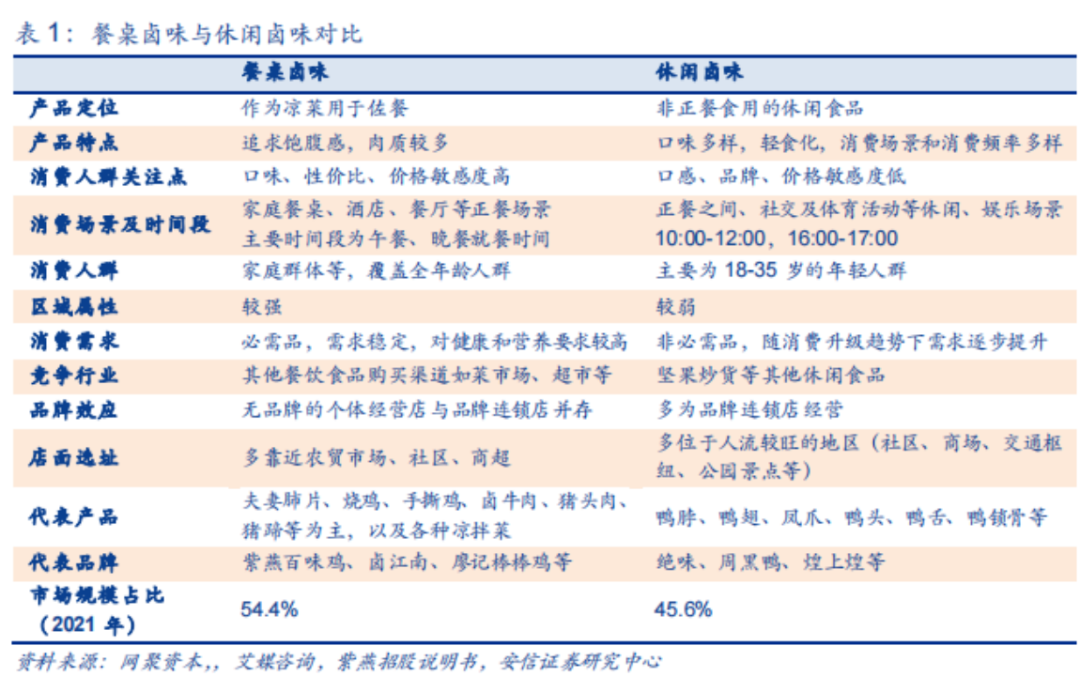 具體到品類來講,鹵味分為餐桌鹵味和休閑鹵味。