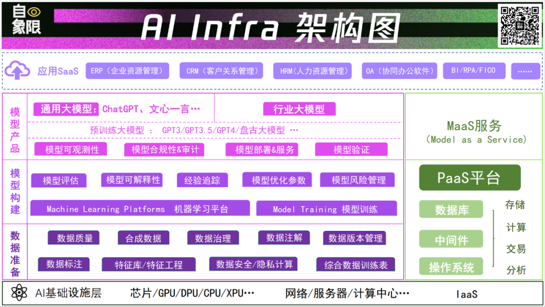 順著大佬們的思路,「自象限」將AI Infra的鏈條進行了盤點和國內(nèi)外公司對比以反觀中國現(xiàn)狀。簡單來說,AI Infra 是一套十分復(fù)雜又基礎(chǔ)的體系,包括構(gòu)建、部署和維護人工智能 (AI) 系統(tǒng)所需的硬件、軟件和服務(wù)的組合,它包括使AI算法能夠處理大量數(shù)據(jù)、從數(shù)據(jù)中學(xué)習(xí)并生成有意義的見解或執(zhí)行復(fù)雜任務(wù)的基本組件。