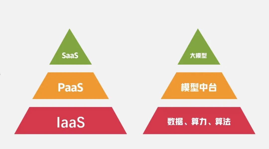 如果我們把大模型看作一個云產(chǎn)品,那么數(shù)據(jù)、算力、算法可以被看做是這個產(chǎn)品的“IaaS”,即基礎(chǔ)設(shè)施。而在“基礎(chǔ)設(shè)施”和前臺應(yīng)用的SaaS之間,還存在一個PaaS平臺作為中間層,承擔(dān)起為SaaS提供部署平臺,開發(fā)工具等任務(wù)。