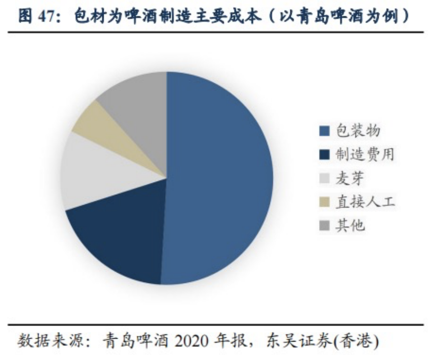 據(jù)青島2020年年報(bào)數(shù)據(jù)顯示,他們的包裝物在總成本中占比達(dá)到50%。