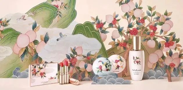 先說雪花秀。在2018年韓流退潮的大環(huán)境下,雪花秀看到了國潮的新風口。2018年中國風限定新款——雪花秀武陵桃源限量系列,她換掉了原本素雅不起眼的白色包裝,將傳統(tǒng)繪畫風格與現(xiàn)代主義風格結(jié)合,古色古香的中國風包裝率先收割了一波顏值剁手黨。