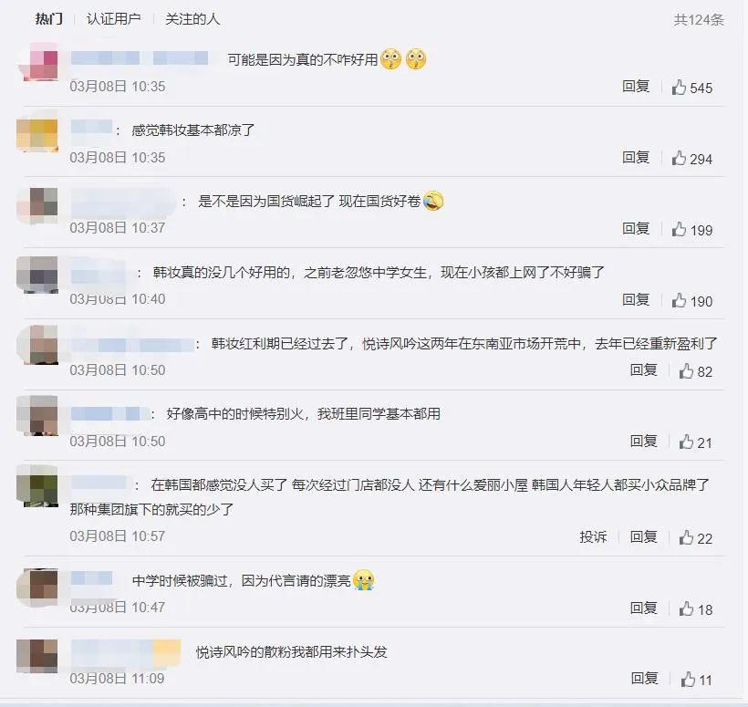 顯然,韓妝品牌并沒有抓住這個新風口,及時創(chuàng)新變革,如此之下,韓妝市場流失也是情理之中。就如悅詩風吟近日推出新logo,意圖轉(zhuǎn)型為功效性護膚品牌,但網(wǎng)友對此卻一致表示“不如不改”,可以說悅詩風吟未抓對轉(zhuǎn)型時機,有些為時已晚。