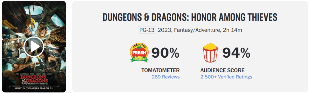 3月最后一周,《龍與地下城:俠盜榮耀》正式公映。