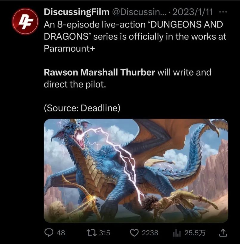 在經(jīng)過多次檔期變動后,《龍與地下城》終于在今年公映。與此同時,衍生自《龍與地下城》的新劇集也在去年官宣,預計將對院線電影的故事形成“補充”。據(jù)報道,派拉蒙旗下的流媒體Paramount+已預定全季,將由eOne和派拉蒙影業(yè)進行制作。