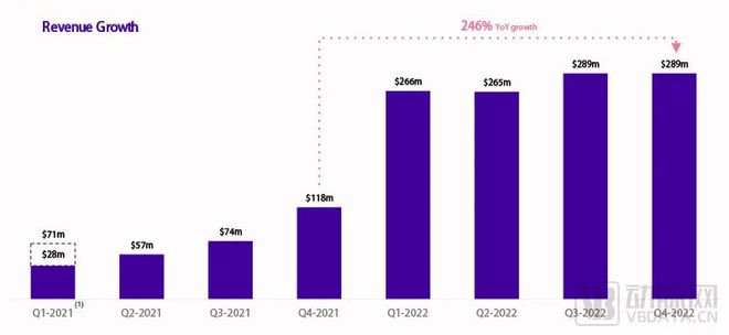 2020年,Babylon營收已經(jīng)達到7927萬美元,年增長率達到了讓人震撼的394%。2021年,收入再次暴增305%,全年實現(xiàn)3.21億美元的營收。與2021年相比,Babylon在2022年的增長率達到264%。雖然增速首次跌破300%,但基于其在上一年已經(jīng)破億的基數(shù),這無疑是一個相當了不起的成就。