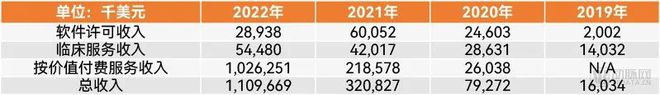 2020年,價值醫(yī)療服務的收入還只有2604萬美元,低于臨床服務收入。僅僅一年后,這部分收入已經(jīng)來到了2.19億美元,已經(jīng)是臨床服務收入與軟件授權收入總和的兩倍之多。2022年,價值醫(yī)療服務的收入的小數(shù)點又往右移了一位,達到10.26億美元,在收入中的占比高達92.5%。