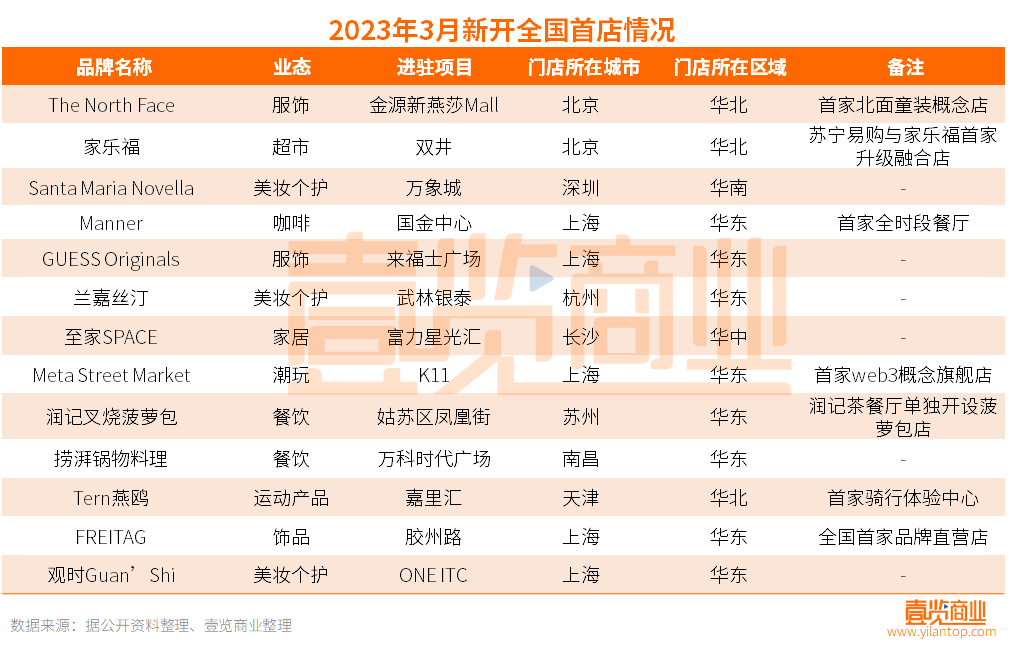 據(jù)壹覽商業(yè)不完全統(tǒng)計(jì),2023年3月,全國(guó)各地共新增13家品牌的全國(guó)首店,環(huán)比增長(zhǎng)44.4%,同比增長(zhǎng)8.3%。雖然處于增長(zhǎng)中,但在社會(huì)各界對(duì)消費(fèi)復(fù)蘇的強(qiáng)預(yù)期背景下,這份成績(jī)單只能算是中規(guī)中矩。