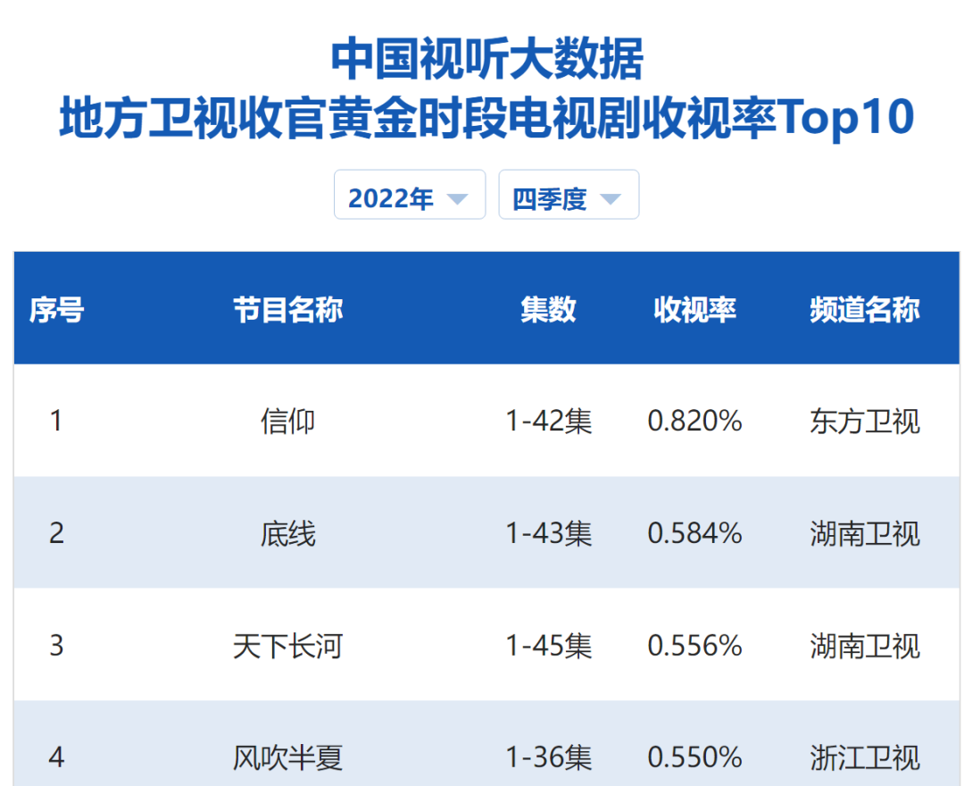 諜戰(zhàn)劇《信仰》以0.820%收視率位居“視聽大數(shù)據(jù)”2022年四季度衛(wèi)視第一,網(wǎng)絡(luò)上掀起的水花遠遜于《底線》《風(fēng)吹半夏》等??;