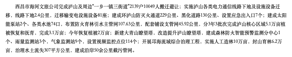 信息顯示,西昌海河文旅投資公司成立于2013年8月,為西昌市國有資產(chǎn)經(jīng)營管理有限責任公司全資控股,經(jīng)營范圍包括組織文化藝術交流活動;企業(yè)形象策劃;工程管理服務;游覽景區(qū)管理;名勝風景區(qū)管理等,而“21海河V1”扶貧專項公司債券之所以能在2020年11月23日國家級貧困縣全部脫貧摘帽后仍或審核通過,或歸因于西昌瀘山森林火災災后重建項目的重要性和迫切性。