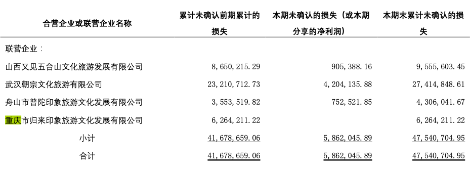 應是受疫情影響,《歸來三峽》項目公司處于超額虧損狀態(tài)。根據(jù)三湘印象(000863.SZ)2022年年報,截止2022年底,重慶市歸來印象旅游文化發(fā)展有限公司累計未確認前期累計的損失為6264211.22元;另據(jù)企查查信息,截至目前,項目公司存在三條欠稅公告,欠稅余額總金額為112.73萬元。