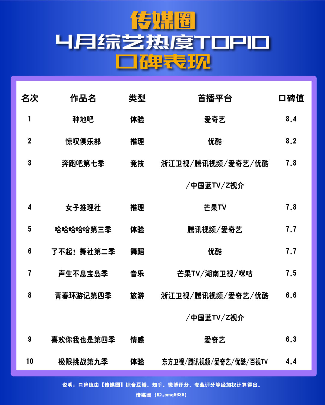 你最喜歡4月的哪一檔綜藝?又更看好5月的哪檔新節(jié)目?歡迎評(píng)論交流。