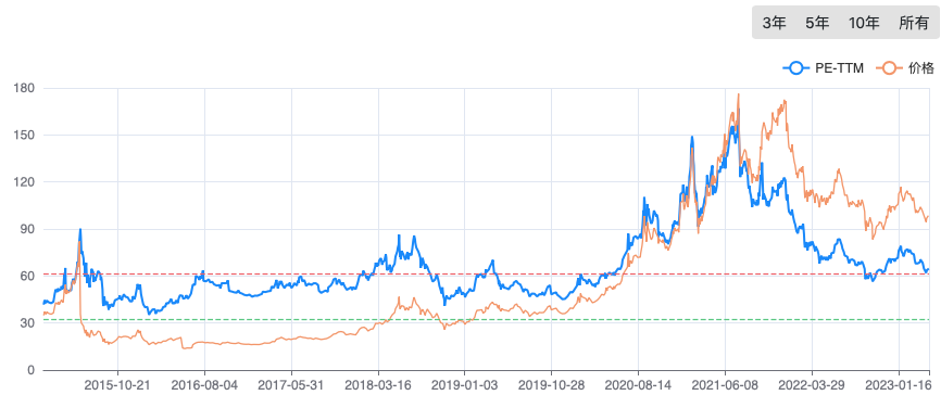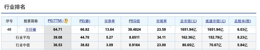二級市場上,除了股價、市值,片仔癀的市盈率也居高不下。