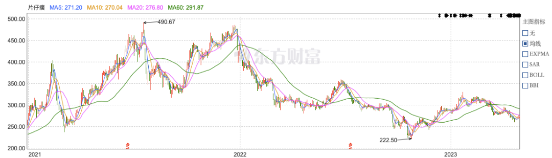 潘杰任職的8個月內(nèi),片仔癀的業(yè)績、股價雙漲,2022年營收首次突破80億元,凈利潤為24.64億元,同比上漲45.86%。股價更是“一飛沖天”。從最低238.04元/股,上漲到最高490.67元/股,這也是片仔癀上市以來的最高點。