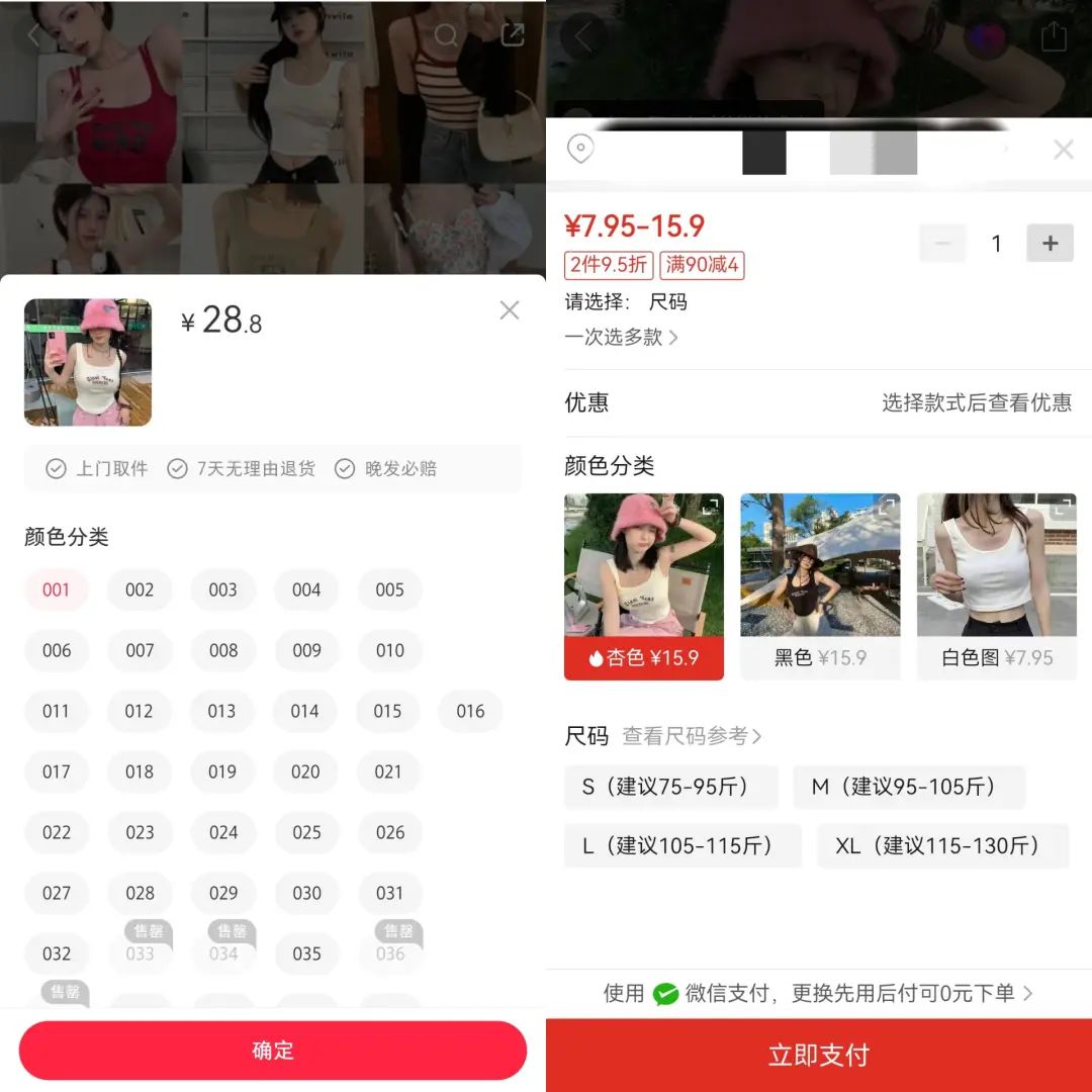“清倉”常常意味著低價,但小紅書上的“清倉”商品卻沒有太強的價格優(yōu)勢。在其他電商平臺按圖搜索,就會發(fā)現(xiàn)價格更低的同款。小紅書上清倉的辣妹背心,拼多多的同款價格在15.9元,同樣打著清倉旗號的鑄鐵鍋,在淘寶上能搜到29元的同款商品。