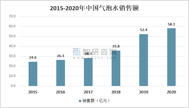 智研咨詢發(fā)布的分析報(bào)告顯示,2018-2020年中國(guó)風(fēng)味氣泡水市場(chǎng)規(guī)模主要為元?dú)馍重暙I(xiàn),銷售額從35.8億元增加到了58.1億元。2021年隨著各大廠商新品入局風(fēng)味氣泡水領(lǐng)域,氣泡水行業(yè)快速擴(kuò)容,預(yù)計(jì)整體氣泡水行業(yè)規(guī)模有望躍升。