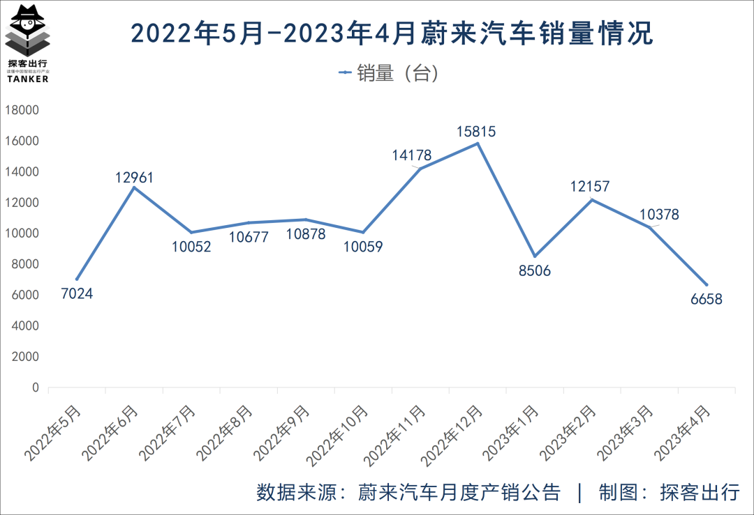 前四個(gè)月實(shí)現(xiàn)新車總銷量約3.77萬臺,雖有著22.23%的同比增長,但也明顯低于乘聯(lián)會公布的新能源汽車同比35.90%的銷量增速。若是按照李斌在2022年四季度財(cái)報(bào)會上對2023年銷量翻倍的目標(biāo)看,前四個(gè)月僅完成24.5萬臺年度銷量目標(biāo)的15.39%,而時(shí)間上卻已過去了三分之一。