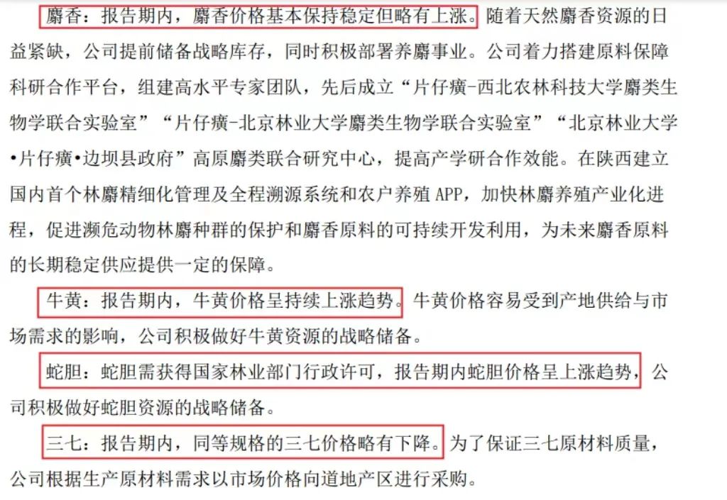 并且,片仔癀指出,從長(zhǎng)期看,麝香、牛黃及蛇膽的價(jià)格呈上漲趨勢(shì),未來(lái)將對(duì)成本產(chǎn)生上升壓力。但據(jù)21世紀(jì)經(jīng)濟(jì)報(bào)道,天然麝香的供應(yīng)并不特別緊缺,一頭林麝每年的設(shè)想產(chǎn)量約為20克,國(guó)內(nèi)批準(zhǔn)使用天然麝香的廠家有15家左右,至今未發(fā)現(xiàn)缺貨情況。