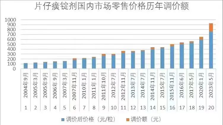 先是在5日,片仔癀發(fā)布公告稱(chēng),將片仔癀錠劑每粒價(jià)格從590元/粒上調(diào)到760元/粒,引發(fā)輿論“海嘯”。而據(jù)相關(guān)統(tǒng)計(jì),片仔癀自2003年上市以來(lái),至今產(chǎn)品已提價(jià)20次,價(jià)格漲幅近600%。