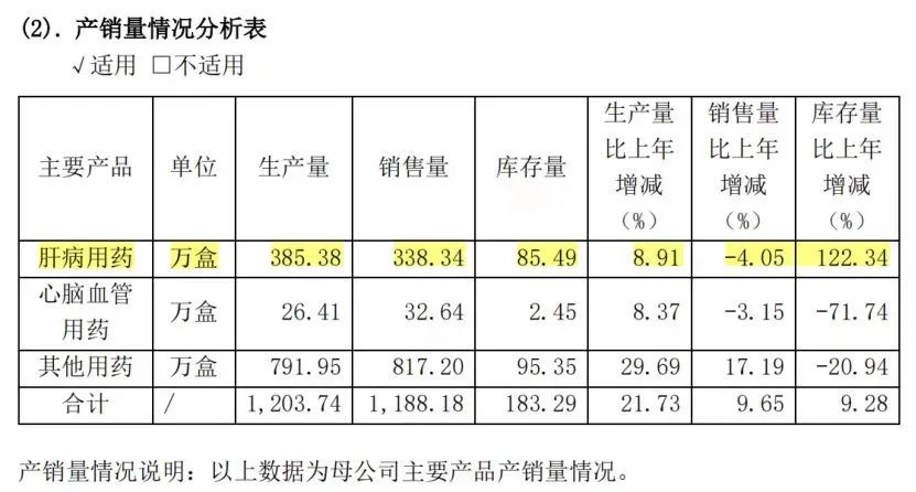 2022年,片仔癀單獨(dú)披露了肝病用藥的銷(xiāo)量為338.34萬(wàn)盒,同比下滑4.05%,且在產(chǎn)量增長(zhǎng)8.91%的情況下,庫(kù)存同比大增122%,期內(nèi)肝病用藥收入也減少了2.95%。