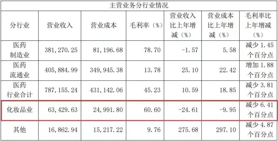 今年一季度表現(xiàn)則更為慘淡,片仔癀的化妝品業(yè)務(wù)營(yíng)收僅為1.09億元,同比減少42.78%,毛利率為60.67%,同比減少8.42個(gè)百分點(diǎn)。