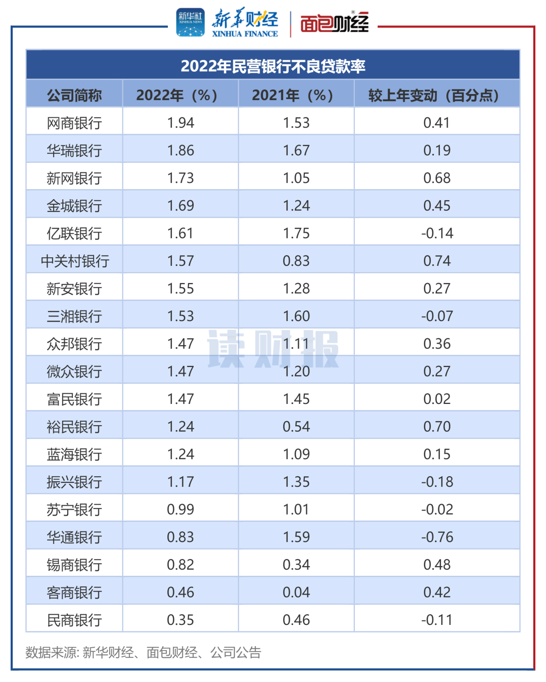 不良貸款率:網(wǎng)商、華瑞、新網(wǎng)銀行居前三