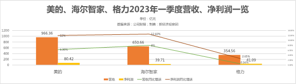 可以看出,今年一季度,三巨頭營收、凈利均實現(xiàn)同比增長,相較2022年同期低谷有所進步。這也反映出消費市場逐漸復(fù)蘇后,人們購買家電產(chǎn)品的熱情逐漸高漲起來。尤其是在預(yù)制菜市場逐漸興起后,進一步帶動家電行業(yè)的旺盛需求,格力、海爾智家紛紛入局,帶來一波小的增長高潮。