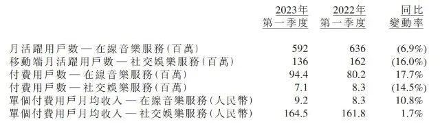 截圖來自騰訊音樂娛樂集團(tuán)(TME)2023一季報(bào)