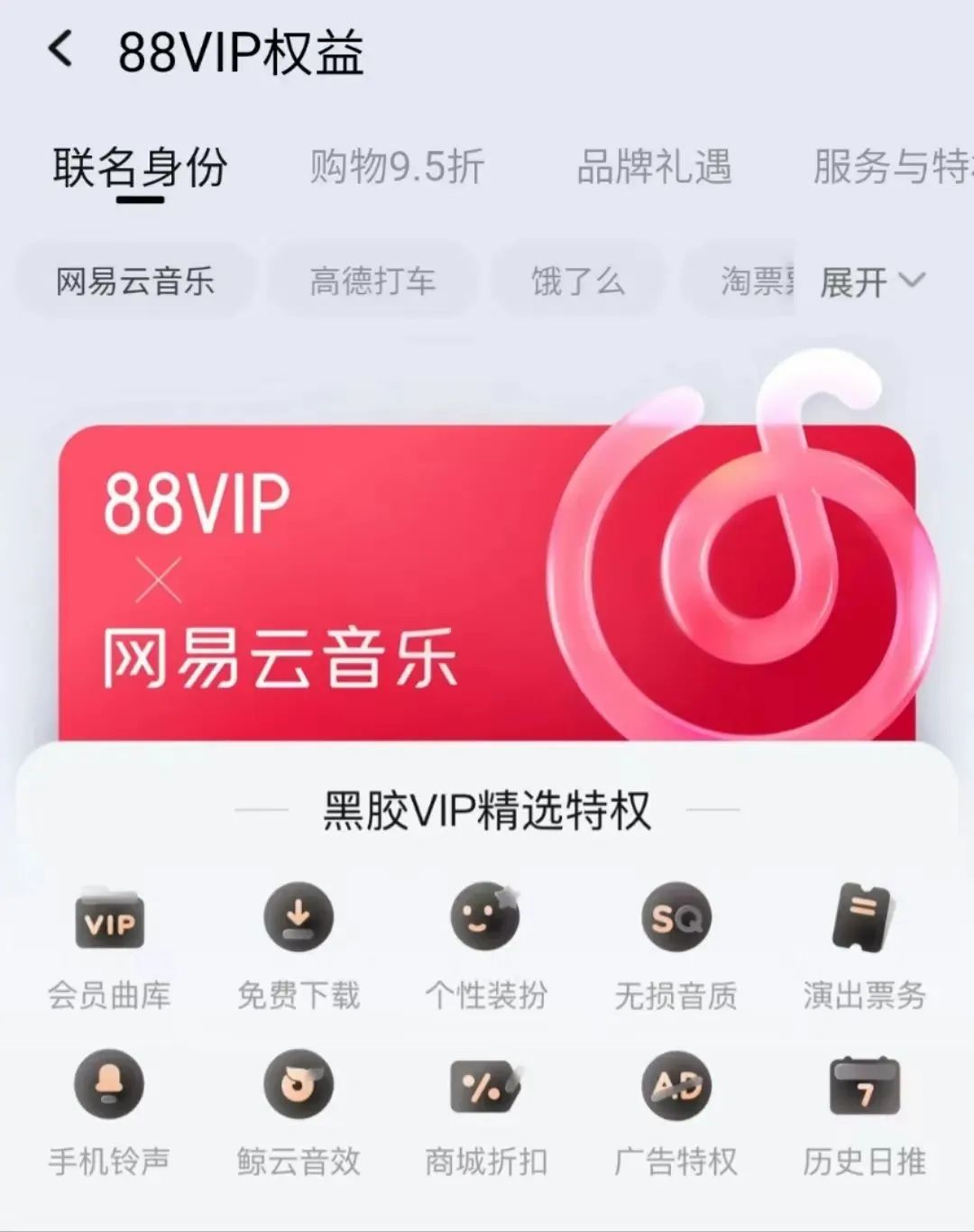 誠然,無論是視頻還是音樂平臺,低價(jià)和優(yōu)惠策略都是前期培市場的利器。包括視頻平臺三次漲價(jià)之后,周期性發(fā)放折扣價(jià)會員福利,以及與類似阿里88VIP等福利包做綁定也是常見操作。