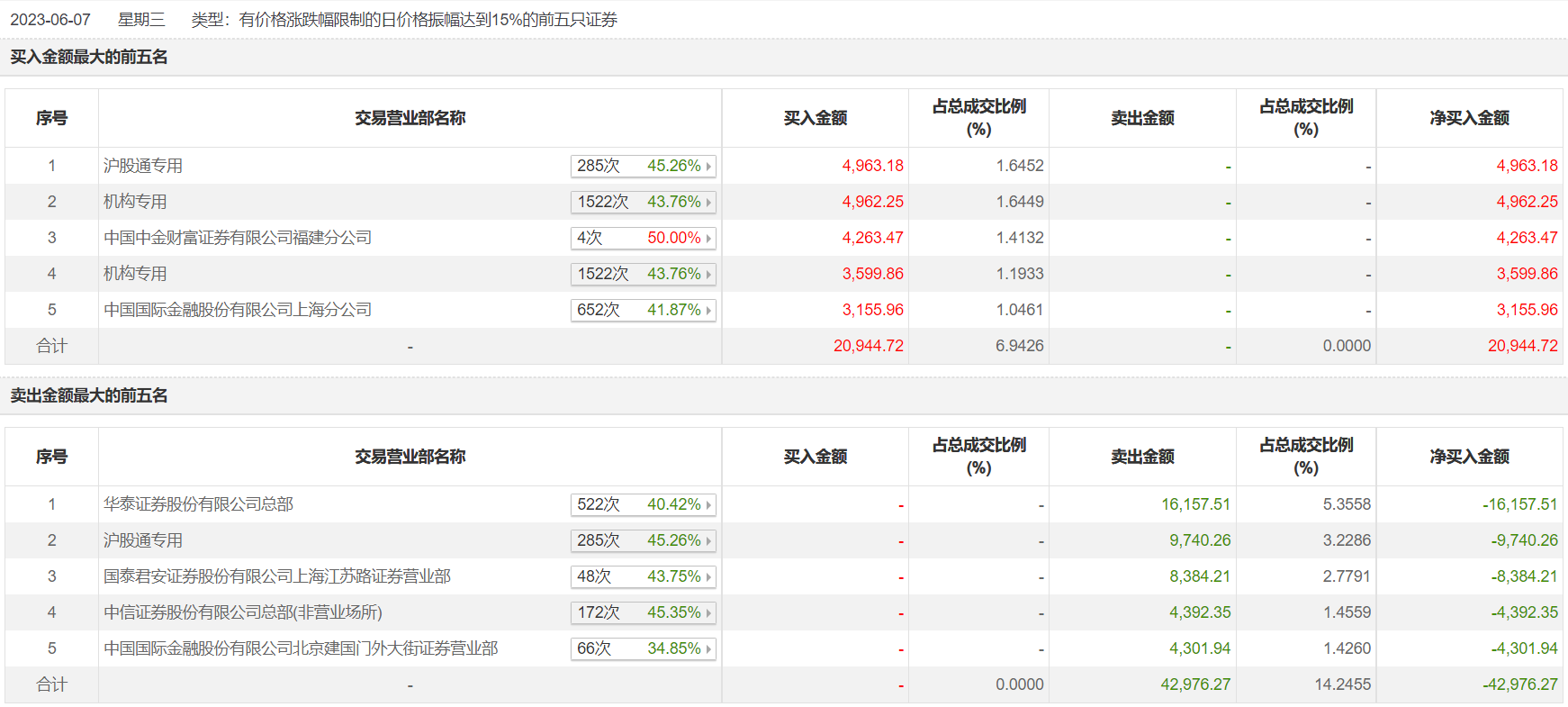 具體來看,機(jī)構(gòu)合計(jì)凈買入8562.11萬元。此外,知名游資現(xiàn)身龍虎榜,章盟主(國(guó)泰君安證券股份有限公司上海江蘇路證券營(yíng)業(yè)部)凈賣出8384.21萬元。此外,滬股通專用、中國(guó)中金財(cái)富證券有限公司福建分公司分別買入4963.18萬元、4263.47萬元;華泰證券總部、滬股通專用分別賣出1.62億元、9740.26萬元。