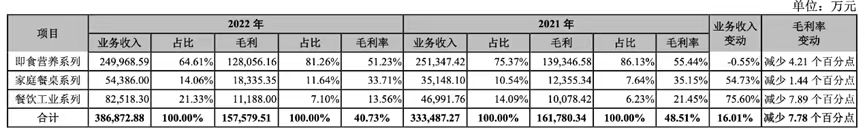 由兒童零食到攻占家庭餐桌,成了妙可藍(lán)多寄予厚望的“第二曲線”,但在如今的行業(yè)大背景下,妙可藍(lán)多的突圍不再輕松。公司家庭餐桌系列、餐飲工業(yè)系列毛利率分別為33.71%、13.56%,遠(yuǎn)低于即食營(yíng)養(yǎng)系列的51.23%。