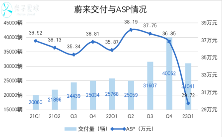 銷量方面,一季度蔚來汽車銷量31041輛,同比增長20.5%。由于NT1.0平臺車型進入去庫存末期,影響了該季度交付情況。