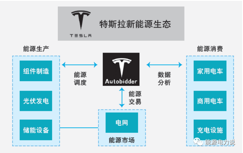 眼下,特斯拉通過(guò)電動(dòng)汽車、儲(chǔ)能、發(fā)電和虛擬電廠等領(lǐng)域,初步構(gòu)建起“車+樁+光+儲(chǔ)+荷+智”的新能源閉環(huán)生態(tài)。其中虛擬電廠智能平臺(tái)Autobidder是核心樞紐,負(fù)責(zé)新能源交易和控制管理,智能平臺(tái)管理著數(shù)百兆瓦的電力資產(chǎn)。