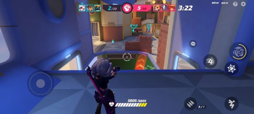游戲整體主打輕量休閑競技。瞄準全球市場,游戲角色為美式卡通畫風,場景以明亮色塊簡單建模鋪就。相對PC端,地圖更小,在自動射擊+5分鐘限時競技的設定下,擊殺對手得分,率先獲得20分即可獲勝,整體游戲體驗非常爽快。