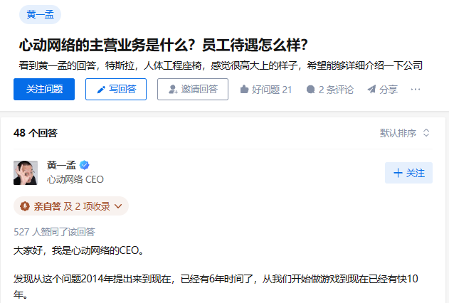 在2014年建立的知乎問題中,“心動網(wǎng)絡的主營業(yè)務是什么?員工待遇怎么樣?”曾有員工闡述“996、管理不透明等”問題。2020年,黃一孟突然降落回答,闡述了心動踐行“只雇成年人”、“薪酬將做到游戲行業(yè)最高”的觀點。在同年,心動設立高薪無項目獎金、半年離職致意金、無限制假期、不簽署競業(yè)協(xié)議等理想化規(guī)定也引起行業(yè)熱議。