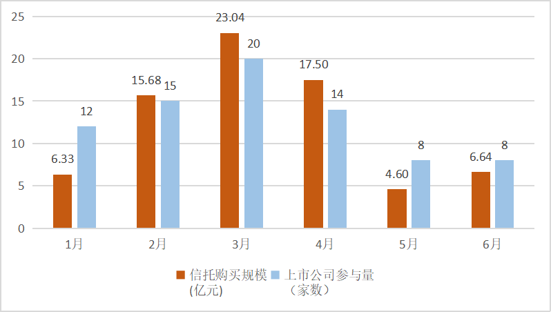 據(jù)界面新聞梳理,截至6月28日,6月以來(lái),已有8家上市公司披露信托產(chǎn)品購(gòu)買情況,總認(rèn)購(gòu)資金6.64億元,盡管認(rèn)購(gòu)規(guī)模遠(yuǎn)低于去年同期的16.29億元,但仍較今年5月環(huán)比提升超過(guò)4成。其中,3家上市公司在信托認(rèn)購(gòu)金額上過(guò)1億元,上市公司購(gòu)買信托產(chǎn)品的熱情有所升溫。
