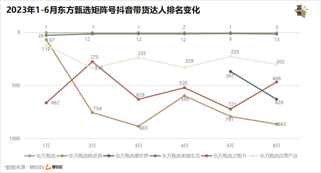 2023H1東方甄選矩陣號(hào)抖音帶貨能力排名變化