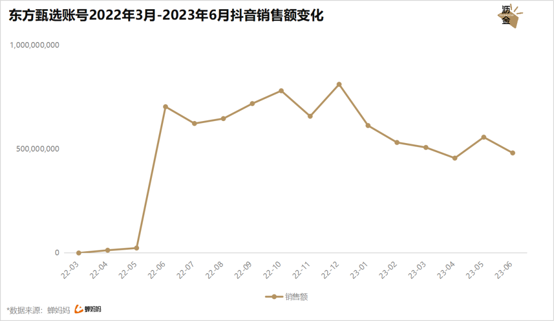 東方甄選抖音號(hào)2022.03-2023.06銷售額變化