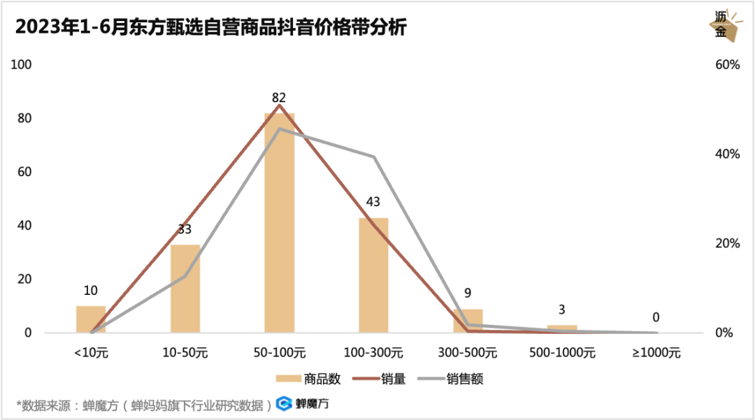 2023年H1東方甄選自營(yíng)商品價(jià)格帶分析