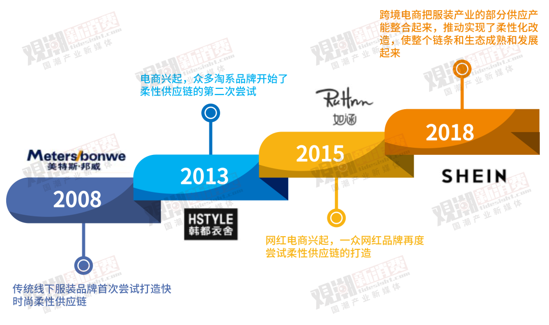 第三次嘗試是在2015年左右,網(wǎng)紅電商興起,款式需求更多,訂單深度需要更淺,對(duì)庫(kù)存積壓風(fēng)險(xiǎn)管控要求更高,因此一眾網(wǎng)紅品牌嘗試柔性供應(yīng)鏈的打造,但也未有顯著成效。